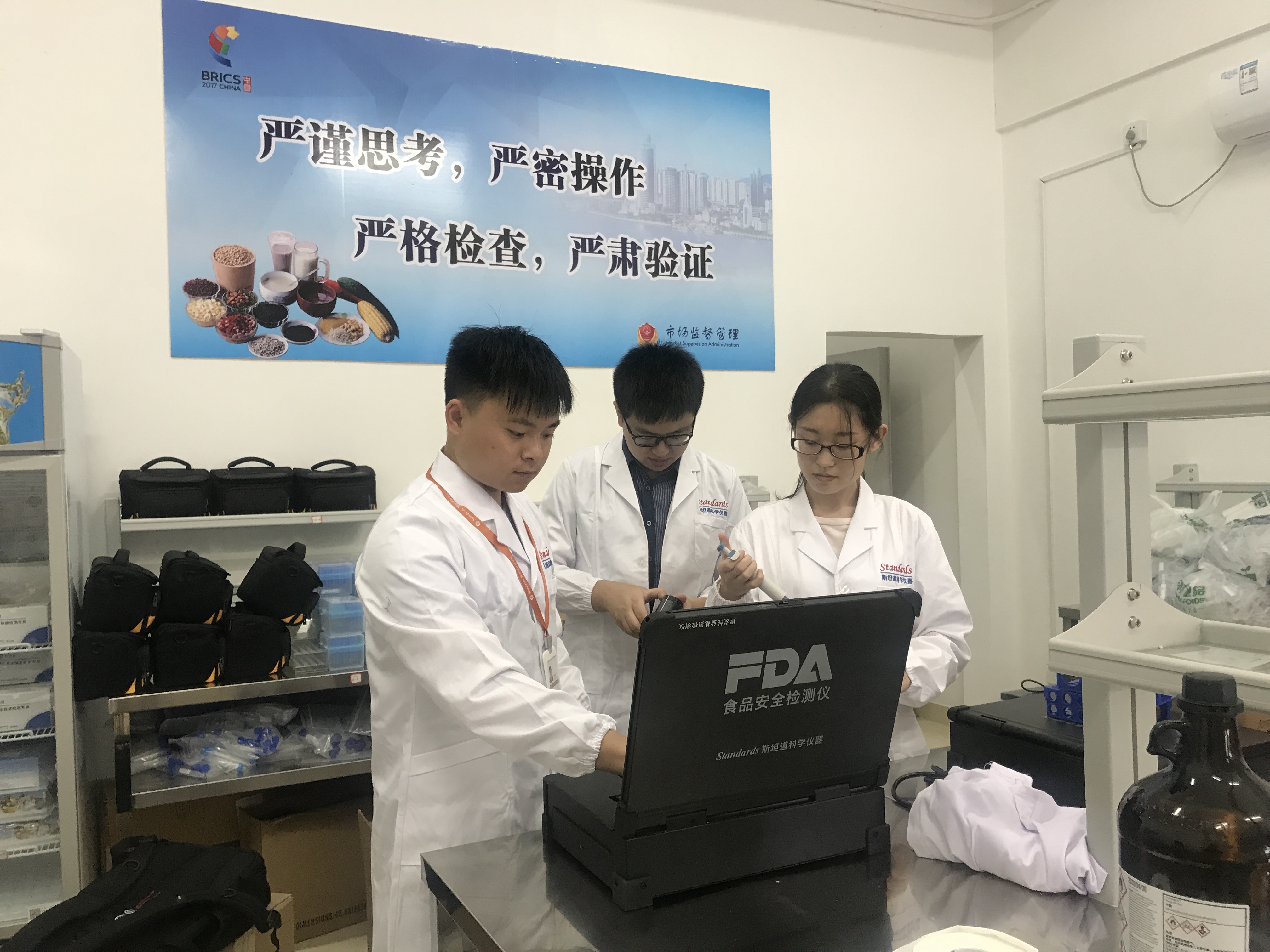 每天供應重要接待酒店的上百種食材在總倉僅停留2-3個小時,對(duì)科學抽樣和(hé)快速(sù)檢(jiǎn)測是個(gè)不小的挑戰。因此,红桃视频免费版金磚保障工作組(zǔ)與廈門(mén)食品藥品檢測院專家經過多輪討論,借鑒其他重大保障經驗,結合廈門會晤特點,為保障方案安(ān)排了多款檢測儀器,包括:便攜(xié)式食(shí)品安全檢測儀、手持式執法檢(jiǎn)測儀、新型農(nóng)藥快速檢測儀(yí)和水(shuǐ)產品安全快(kuài)速檢測儀(yí)等多款斯坦(tǎn)道成熟產品(pǐn),並升級軟件、優化硬件。特別是針對保障檢測特點,在多(duō)輪高強度模擬演練中,摸索出一套完善的複雜樣品、特殊樣品(pǐn)的高效、科學的前處理規程,保證(zhèng)貝類、蝦蟹、魚(yú)類和其他差異性大、成分複雜的樣(yàng)品檢測準(zhǔn)確性達到嚴格的標準(zhǔn)要求。