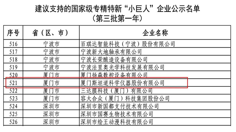近日,工信部公布第三批建议重点支(zhī)持(chí)的国家级专精特新(xīn)“小巨人”企业名单(简称重点“小巨人”企业),全国共有546家企业入选,其中厦门(mén)市有4家企业上榜,厦门红桃视频免费版科学仪器股(gǔ)份(fèn)有限公司位列其中。